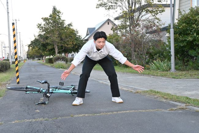 思わず「誰かひもを踏んでください!」と大声で叫んだ大和田さん。するとたまたま自転車で下校途中だった、帯南商2年の東俊作さん、谷口竜聖さん、富樫花音さんと、同3年の小原瑚子さん、川﨑色葉さんの5人がその声に気付いた。
