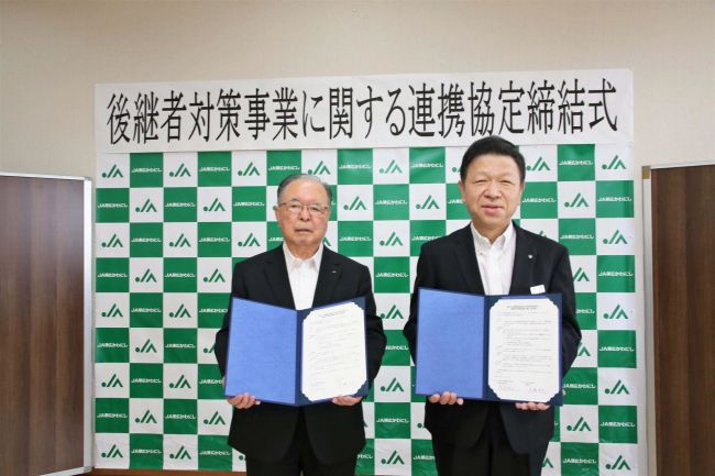 同日、JA帯広かわにしの本所で協定締結式が開かれ、有塚組合長と高橋理事長が協定書を取り交わした。
