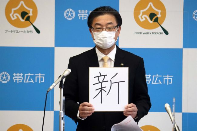 4期目に掛ける思いを漢字一文字で「新」と表現。「よく木を愛し育て、それを努力して加工して新たなものに活用していくというのがこの字の成り立ち。『フードバレーとかち』を新しいステージにと話しているが、十勝・帯広の持つ資源を新たなものにしていく」と語った。(津田恭平)