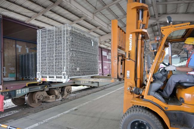 ジャガイモの収穫シーズンを迎え、今年も十勝から本州に向けたバレイショ輸送専用列車(ジャガイモ列車)の運行が12日から始まった。十勝北部の5農協のジャガイモ500トンを載せた貨物列車が帯広貨物駅を出発し、28時間かけて埼玉県熊谷市へ運ぶ。