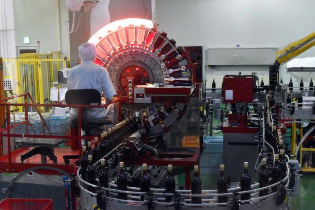 【池田】今年産のブドウで醸造した「十勝ワイン 新酒赤」の瓶詰めが1日、池田町ブドウ・ブドウ酒研究所(佐野寛所長)の製造工場で行われた。フランス産新酒ワインのボージョレ・ヌーボーは、円安などにより価格が高騰し、国産新酒ワインの需要が増しているとされる。同研究所では例年12月に始める販売時期を前倒しにし、ボージョレ・ヌーボーの解禁日17日に合わせて発売する。