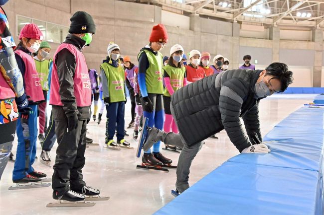 2017年から始まり、21年のオンライン実施を挟んで2年ぶりの実地開催。十勝管内外のスケート経験者の小学4~6年生101人と保護者が参加した。スタートやコーナーの重心移動などを指導した清水さんは「一つができれば次の課題が見える。慌てずにきょうの教えた中で一つだけできるようになろう」と呼び掛けていた。