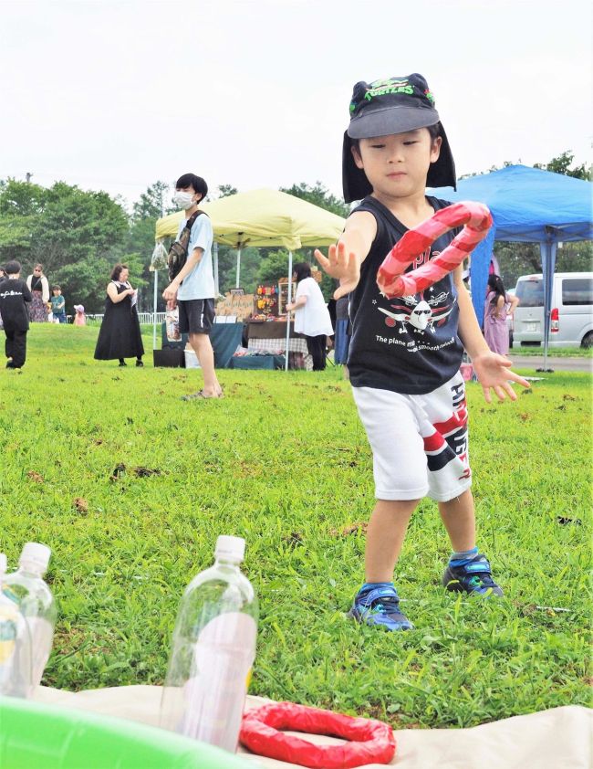 屋外では、道内のプロゴルファーらがスナッグゴルフ体験会を開き、クラブの握り方からスイングまで教えた。体験した鹿追町の八田空さん(7)は、「1回目で的に当たった。楽しかった」、弟の光さん(6)は、「2回で当てられた」と喜んでいた。(柳田輝)