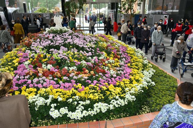 今年の総合花壇は「草原に舞う菊のドレス」をテーマに菊2650鉢を使って立体的に表現。写真の撮影スポットを設けている。期間中はJICA北海道の協力を得て民族衣装や楽器を展示するブースを設け、5日には研修員らによるステージイベントを行うなど「国際色豊かな菊まつりになる」と高井信夫帯広菊花同好会会長。4日には高校生の書道パフォーマンスを行うほか、4年ぶりに日本庭園での「野点(のだて)」を復活する。姉妹都市(大分市、徳島市、静岡県松崎町)の物産販売もある。