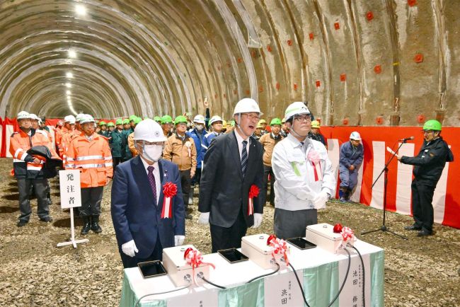 同JV工事事務所の水沼健次所長は、13カ月にわたる掘削工事を振り返り、「真冬の施工に苦労した」と話す。その上で「4車線化1発目の工事。まずは事故なく貫通でき良かったが、まだ工事は続く。残りの期間も気を引き締め、無事故無災害で竣工したい」と話した。(完戸雅美)