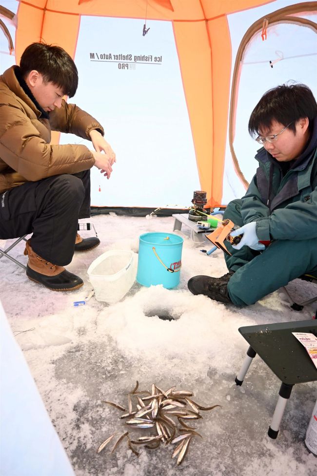 帯広市内の会社員の吉田慎さん(32)、間宮光岳さん(27)は午前5時に訪れ、2時間程度で100匹程度を釣り上げた。「ほぼ“入れ食い状態”。天ぷらにするのにちょうど良いサイズなので、晩酌が楽しみ」と話していた。