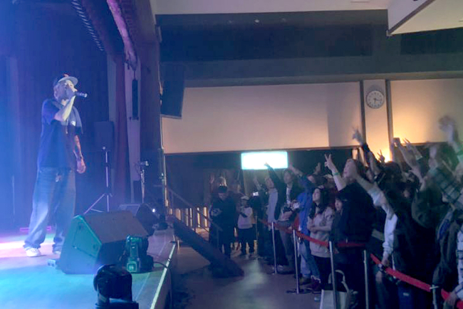 人気バンド「RIZE」のボーカルJESSE(ジェシー)が登場すると、会場は熱気に包まれた。「1回失敗したってゲームオーバーじゃない」などメッセージ性あふれるフレーズに重低音のメロディーが調和、観衆を引きつけた。