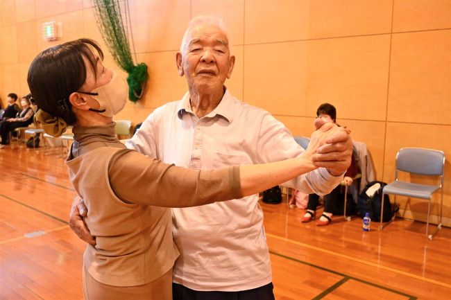 現在は、帯広市内のサークル「プラザダンス」でワルツやタンゴなどを楽しむ。パートナーを組む斉藤容子さんは「リードがいいから任せておけば自然に踊れる」と笑顔だ。