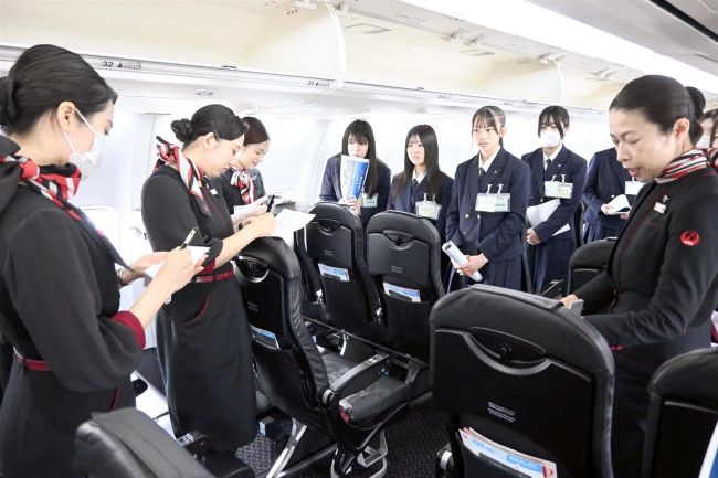 2年の松永桜子さん(17)は、「小さい頃からCAさんに憧れがあった。仕事の様子を実際に見て、話を聞けて良かった」と話していた。