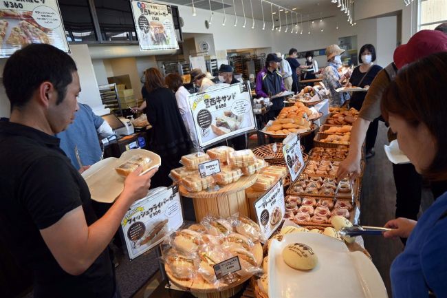 約90種をそろえる。新商品は豊西牛サンド(480円)のほか、ストロベリーやマンゴーなど各種デニッシュ(250円)など、土日限定で豊西牛ハンバーガー(540円)も新規で提供する。(佐藤いづみ)