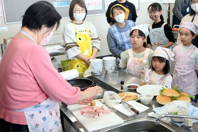 この日は、箕浦さんが「手軽においしく作れる」と選んだ「スティックポークチャップドッグ」「コーンとすりみのカツ」「アズキ入りミルクプリン」の3品を調理した。参加した親子らは楽しげに協力し合いながら、1時間半ほどで完成させた。