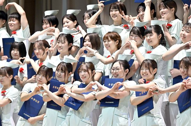 一人一人に卒業証書を手渡した佐澤学院長は「一生懸命頑張っているといろんな人がいろんなチャンスをくれる。日々の仕事の中で浮かんだ疑問はその日のうちに調べ、知識や技量を高め、看護のスペシャリストへと成長してほしい」と言葉を贈った。送辞では2年の磯智也さん(20)が「先輩方が受け継いできた理念、姿勢を大切に日々精進していく」とあいさつした。