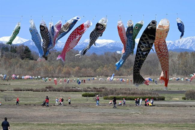 午前10時すぎには、認定こども園たいきの園児たちが早速訪れ、伸び伸びと泳ぐ姿に歓声を上げていた。一戸会長は「日高山脈をバックに泳ぐ姿を見てもらいたい」と話している。5月6日まで。同5日にはミニイベント(午前10時~午後2時)を開催する。(松岡秀宜)