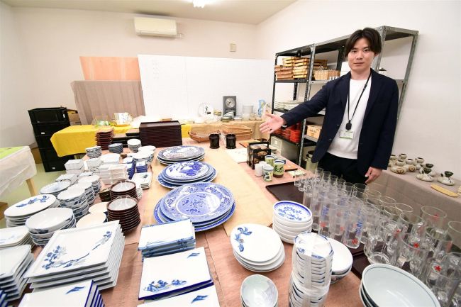 8日に開催したプレオープンでは、杉野菓子店を事業承継する梁泰植(ヤン・テシク)さんが訪れ、食器などを選んだ。梁さんは「皿など使えそうな物がたくさんある。無料で開業準備を進められる」と話していた。