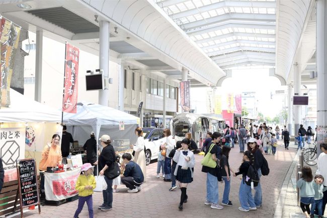 帯広広小路商店街を歩行者天国にするマーケットイベント「広小路マーケット」が1日、広小路アーケード内で開かれた。4回目となる今回は過去最多の出店数で、飲食や物販などを目当ての来場客でにぎわった。