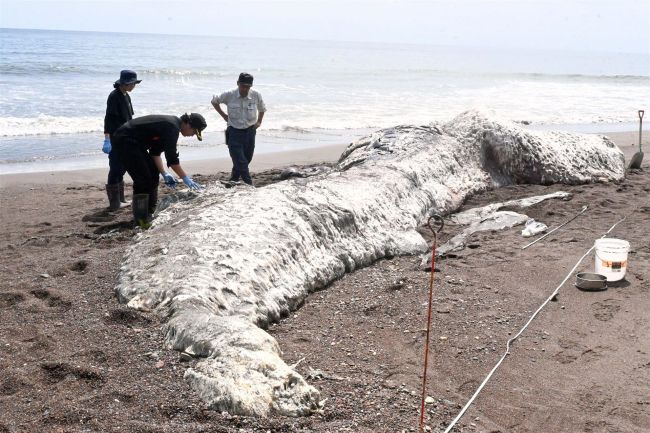 クジラ類の漂着などの情報と標本を収集しているNPO法人ストランディングネットワーク北海道(函館市)のメンバー、元永康誠さん(標茶町立博物館=釧路管内=学芸員)が同日未明から調査に入り、肺や腎臓、肝臓、胃などの臓器や歯、筋肉を採取した。寛骨の形態などから雌である可能性が高いとみられる。臓器は北大水産学部などの研究機関に送られる。