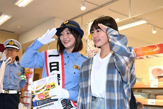 同署の熊谷公人署長から委嘱状を手渡された角田選手は、交通安全や特殊詐欺被害防止、暴力団追放やクマへの注意を訴えた。また、署員らと共に、来店した家族連れなどに啓発グッズを配布した。