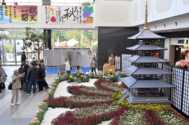 「第56回おびひろ菊まつり」(帯広のまつり推進委員会主催、帯広菊花同好会共催)が帯広市内のとかちプラザで29日まで開かれている。会場では総合花壇や菊花展など、約2000鉢の菊が彩られているほか、各日のテーマに合わせたイベントが繰り広げられている。会場の様子を紹介する。(貞野真生、助川かおる通信員)