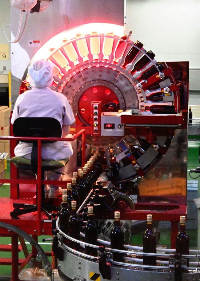 工場内では職員ら10人のスタッフが作業。瓶を逆さにした状態で光を当て、異物が入っていないか目視で確認後、ラベルを貼って箱詰めした。同研究所製造課栽培係の吉國耀太主任は「今年のブドウで造られたワインをいち早く味わえる絶好の機会なので、家庭料理と合わせて楽しんでほしい」とPRする。