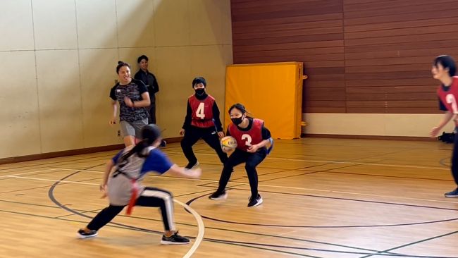 五輪レフェリー務めた桑井さんの笛、忠類中で響く タグラグビーで交流