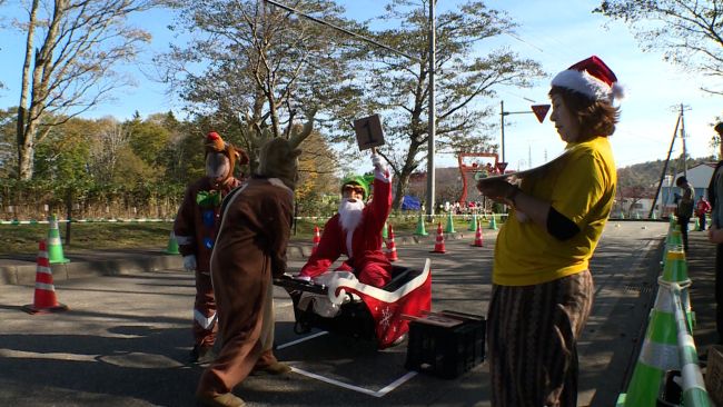 サンタの姿で点灯式を盛り上げ 広尾で仮装ソリ大会