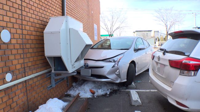 銀行外壁に車、運転男性けが 操作ミスか 帯広