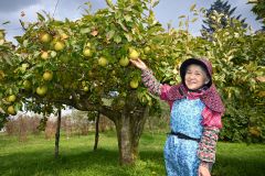 同園はナシのほかにシーベリーやハスカップ、プラム、ブルーベリーなど数種類の果物を栽培。ナシの木は11本あり、うち6本が樹齢100年を超えている。今年は猛暑に加え、大量発生したマイマイガによって葉が害を受け、大きく育たない実が多かった。