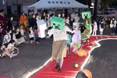 会場には射的などの縁日、ふわふわドームなどが用意され、大勢の子どもが列をつくった。お化けカボチャやバルーンアーチが並ぶフォトスポットも人気を集め、最後に菓子まきが行われた。
