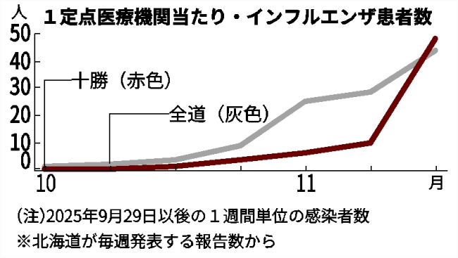 インフル、管内で今季初警報 定点当たり前週比約5倍の48・71人に