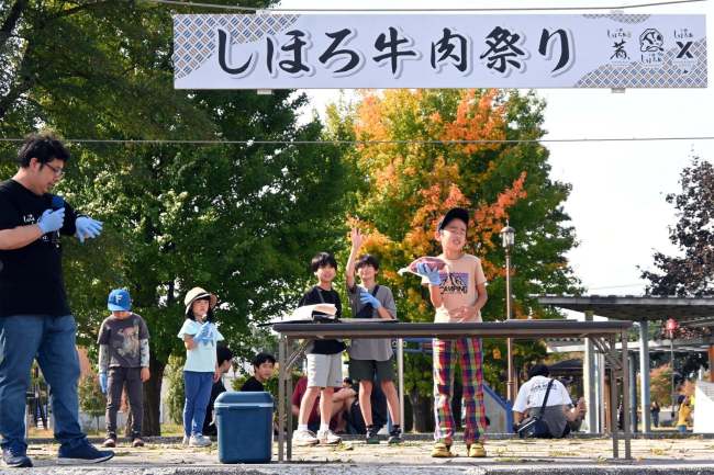 牛肉を手に重量当て しほろ牛肉祭り