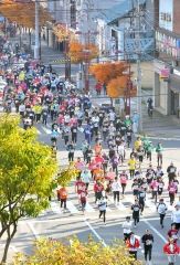 号砲とともにスタートしたランナーで埋め尽くされた帯広市内中心部