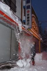 12月としては観測史上1位の69センチの積雪となった新得町。JR新得駅前の民家では午前6時すぎ、この家に住む玉川玲子さん(82)が1人で除雪作業をしていた。「ここで菓子店を営んでいた頃は店の前を除雪し、2階の窓に積もった雪も下ろしていたけれど、今は玄関先だけ」と話し、降り積もった雪と格闘していた。