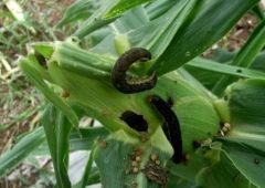平成25 年はヨトウガがそれまで数年間の少発から一転して多発生となった。同年は、てんさいのみならず、広汎な作物での多被害が特徴的である。例として、茎葉、支根を食害されたデントコーンの倒伏、かぼちゃの果皮、スイートコーンの雌穂、にんじんやそばの茎葉などがあげられる。いずれも、通常は問題となりにくい本種被害に気づくのは幼虫が老齢に達した以降であり、老齢幼虫に対する殺虫剤散布では十分な防除効果が得られなかった。