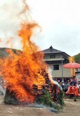 【本別】煩悩や悪を焼き払う荒々しい炎-。真言宗醍醐派赤不動院(町向陽町、棚村憲昭住職)で5月28日、恒例の火渡り祭が開かれた。国家安泰や所願成就を祈る山伏行者の荒行の一つ。会場中央の護摩壇に点火すると炎が高く燃え上がり、読経や儀式が次々と繰り広げられた。