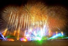 圧巻のスケールで観衆の目をくぎ付けにしたグランドフィナーレ(午後9時ごろ、金野和彦撮影)