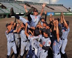 「守備からリズムをつくって攻撃へ」。周東拓弥主将(同)らが言い続けてきた理想を実現、大事な場面で守り切ったことがビッグイニングにつながった。