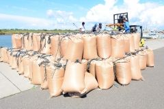 また、大津漁港では15日午前、定置網の補修に向け、関係者らが袋に砂を詰める作業に当たった。袋は定置網に付けて海中で網を固定するために使われ、関係者の1人は「台風と低気圧で波が高いだけでなく、(荒天が)長かったことが影響した。何よりまずは網を直さないと」と話していた。