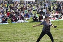 8月の台風で日勝峠やJR石勝線が不通のまま迎えた祭りとなり、入り込みが懸念されたが、前日までに5000枚近いチケットが売れた。観光バスも次々と到着し、青空の下、シートを敷いたグループ客で芝生が埋め尽くされた。