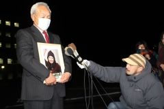 報道陣を前に、やるせない思いを語る父の恒男さん(29日午後4時50分ごろ、釧路地裁前で)