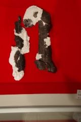 復元された化石は、太さ5センチ、長さ50センチほどのU字形で、赤褐色に輝いている。本体は非常にもろい泥岩で、100個以上の破片を接着剤でつなぎ、パラロイド樹脂でコーティングされている。