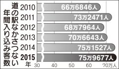 【中札内】道の駅なかさつないの2015年度入り込み客数が、前年度を1・1%上回る75万9677人となった。2年連続の記録更新で、同道の駅指定管理者の村観光協会は「10周年イベントが後押しして、リピーターが増えたのが最大の理由では」と話している。