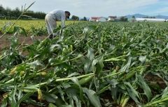 スイートコーンの生産量日本一の芽室町では、収穫前の茎が強風で倒れる畑が相次いだ。今年は生育が遅れ、収穫作業も1週間から10日程度ずれ込む中での被害。収穫に時間がかかり、収量の減少が懸念される。同町中伏古の農家は「根元から折れてはいないが収穫作業が大変で収量も落ちるかもしれない。台風が早く過ぎてくれたことが不幸中の幸いと考えるしかない」と話す。他の作物でも水はけの悪い畑が冠水した。