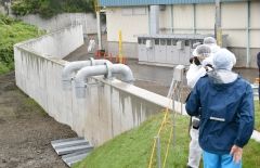 新たに設置され報道陣に公開された高さ3・5メートルの防水壁
