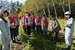 この日は2グループに分かれて行動。このうち学校林を見学するグループには苗作りから枝打ち、間伐まで、学校林を1周しながら森づくりの行程を一通り見学できるコースを用意。各エリアで待っていた生徒が、訪れた中国の高校生に作業内容を説明した。
