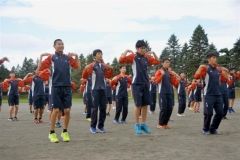 元生徒会長の高橋弥音さん(3年)は「曲と体操がマッチしていて踊って楽しい」と元気に踊っていた。(藤島諒司)