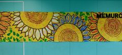 「世界一大きな絵」。芽室小1年生が、足と手に絵の具をつけて描きました。世界の子どもたちの絵と合わせて一つの絵にして、2020年夏に羽田空港に飾られます