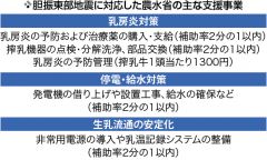 こうした状況を踏まえ、農林水産省は地震被害の支援策として発電機の整備に掛かる費用の3分の1を補助することを決めた。従来の支援額は3分の1だったが、今回の地震を受けて支援内容を拡充。発電機の耐用年数が5年以上残っていれば中古品も対象だ。