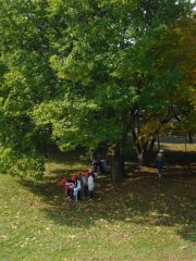 ギンナンが落ちると、児童や教諭のほか、地域の人々も拾って楽しむ。「こういう光景やにおいが小学校生活の思い出としてずっと残るだろう」と山崎校長は目を細めた。(細谷敦生)