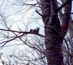 お庭の木に紛れて… リスさんが遊びにきました♪