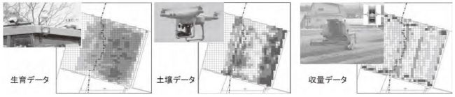 (1 )人工衛星やドローンまたは車載型のセンサにより取得された生育と土壌のデータから畑毎に可変施肥効果の大小が判断できます。